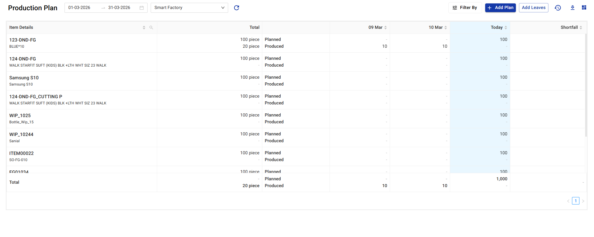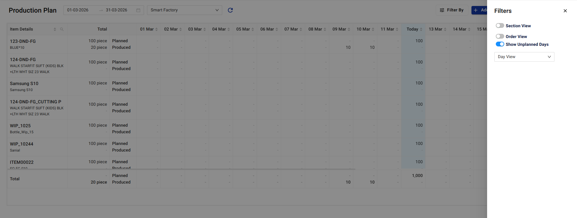 Daily Production Planning allows planners to easily convert sales orders into production schedules, monitor planned vs produced quantities, and focus only on remaining items. Hidden items and flexible filters ensure the planning view remains clean and efficient