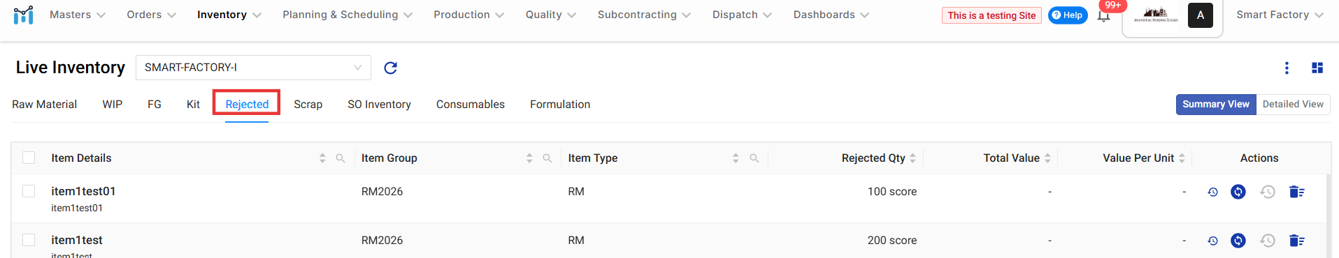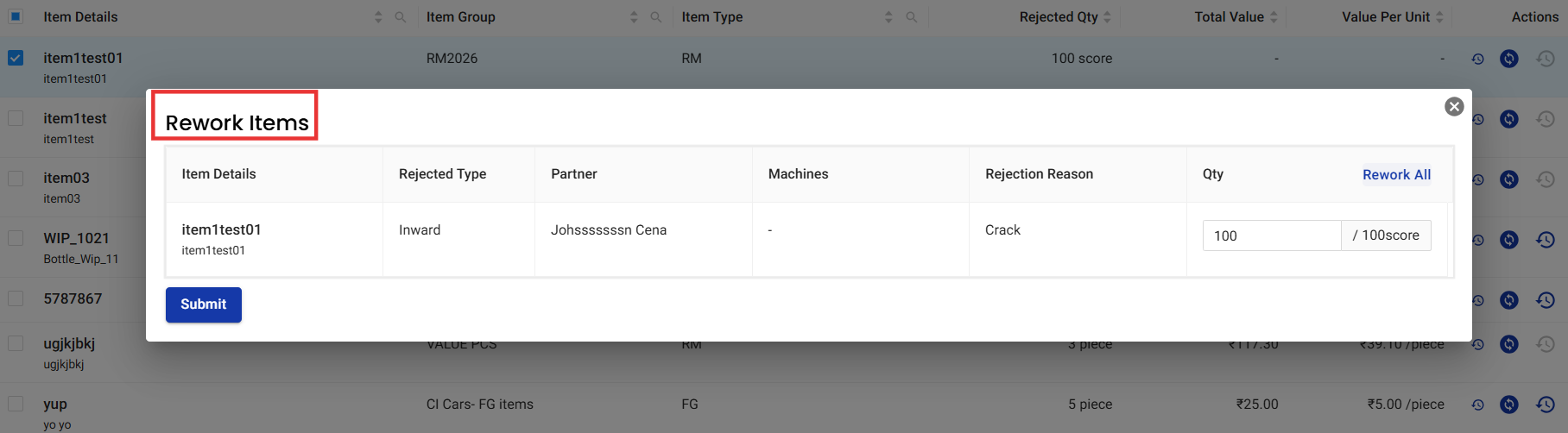 This guide explains how to manage rejected items in ManufApp, including Rework, Scrap, and Outward processes.