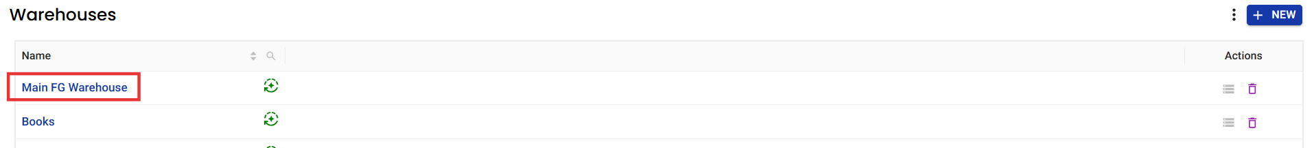 Label → Enter warehouse name (e.g., Main FG Warehouse).