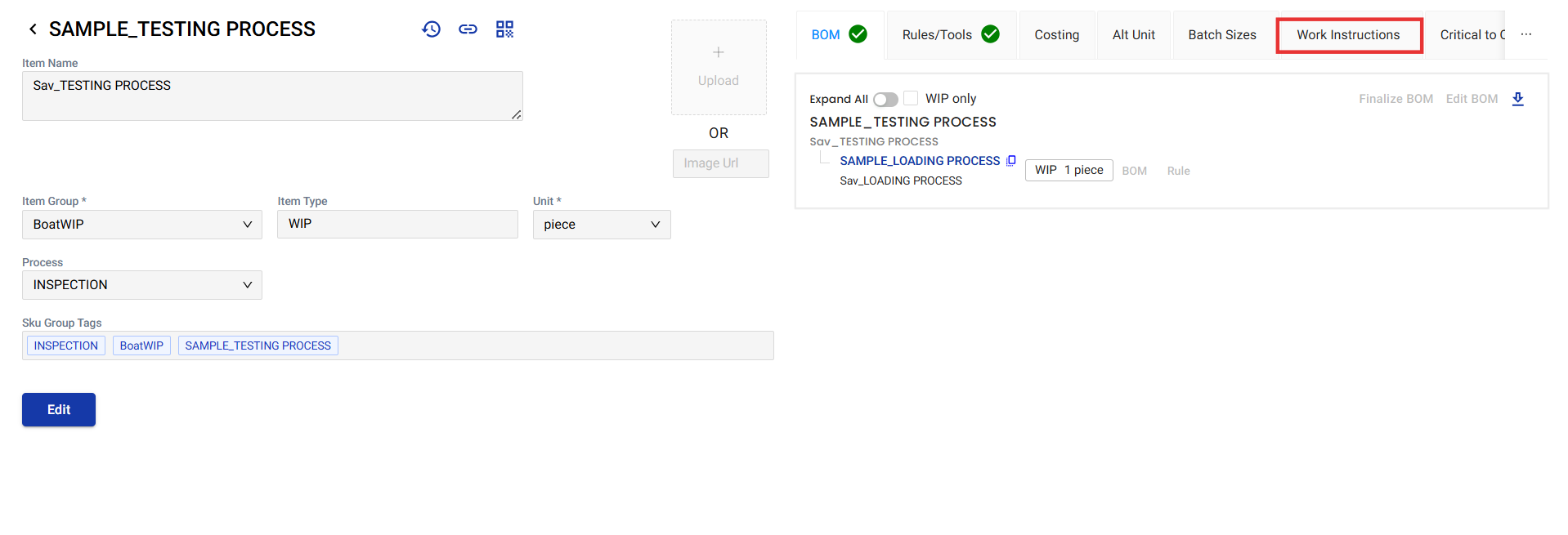 Work instructions are now linked to the item and available for operators directly from the Work Instructions tab during production. This ensures consistent execution, reduced errors, and proper process control.