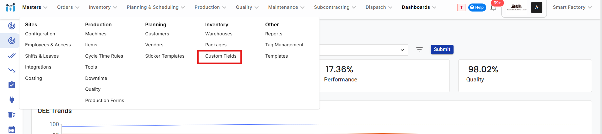 Objective To provide users with a step-by-step process for adding inward additional charges (Handling, Labour, Transportation, etc.) in the Inward Request screen, ensuring accurate landed cost calculation in GRN. Step 1: Navigate to Custom Fields Go ...
