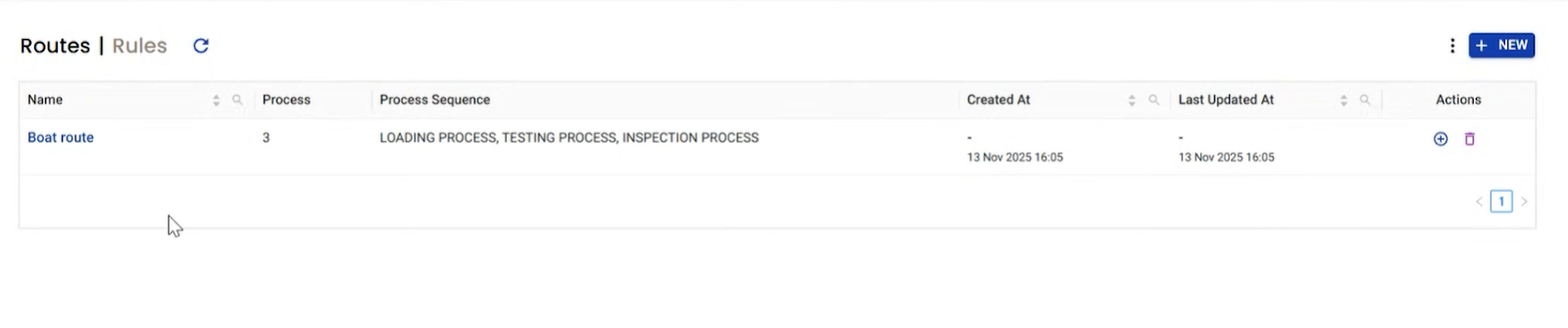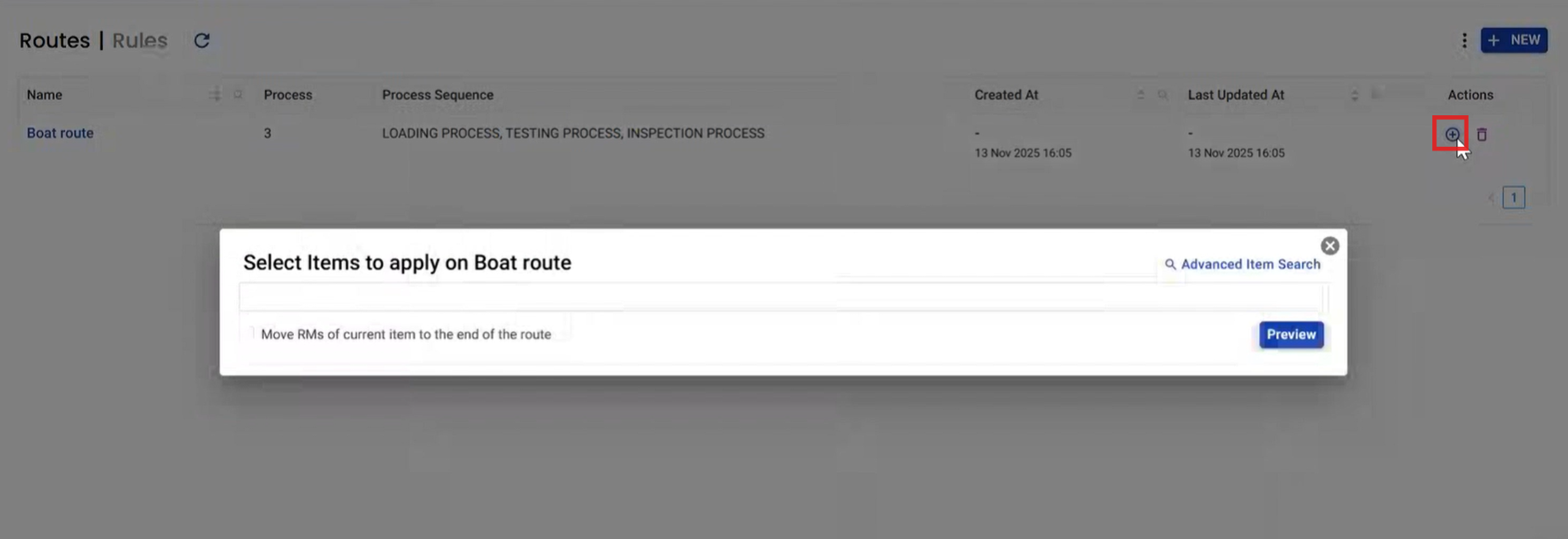 You’ll see a list like Boat route with a Process Sequence (example: LOADING PROCESS, TESTING PROCESS, INSPECTION PROCESS).