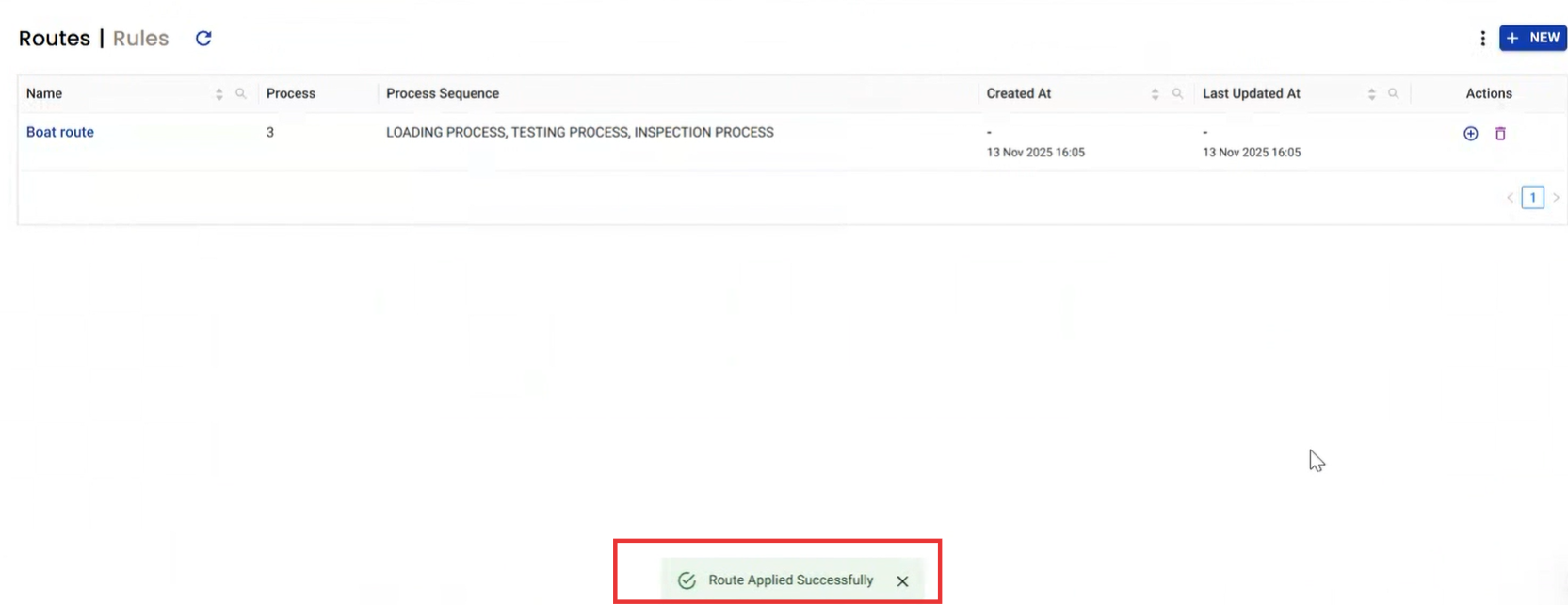 You should get a toast like: Route Applied Successfully