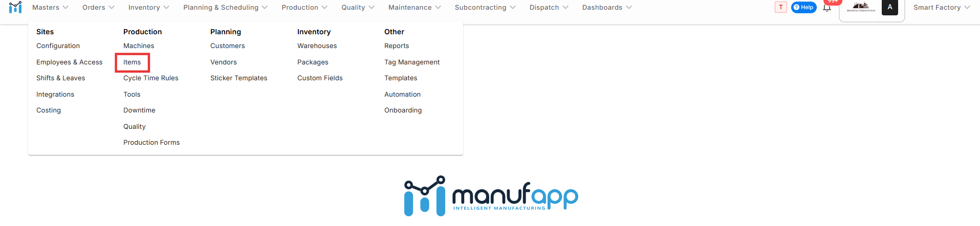 Go to Masters → Items