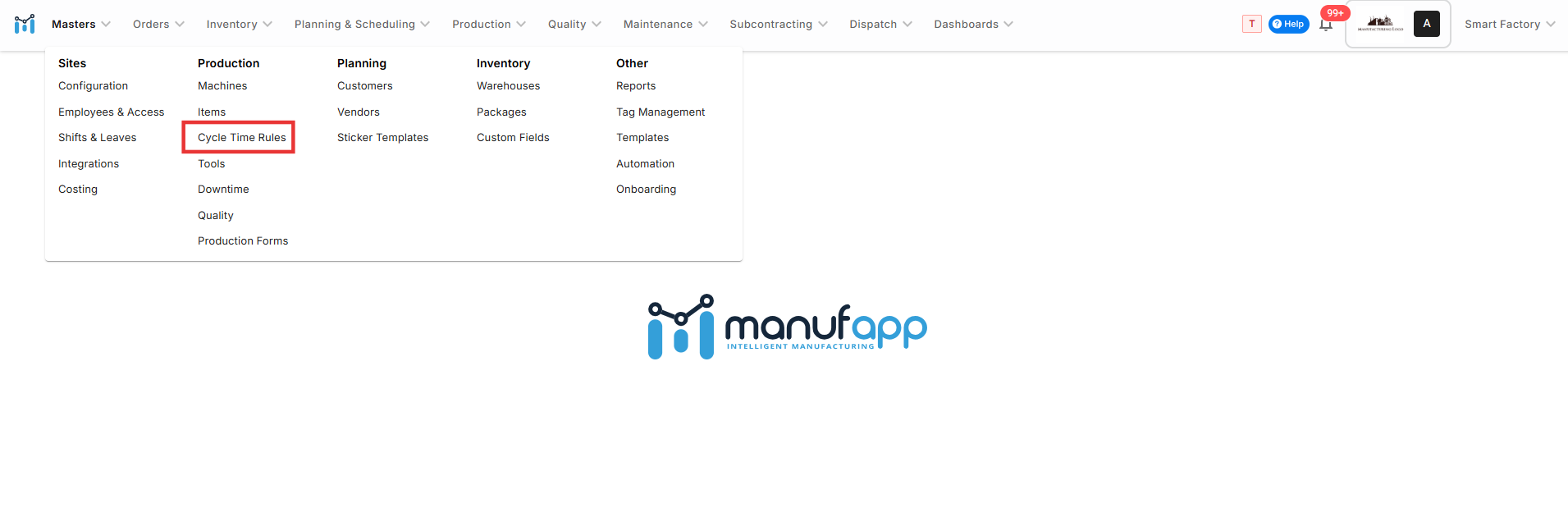 Go to Masters → Cycle Time Rules