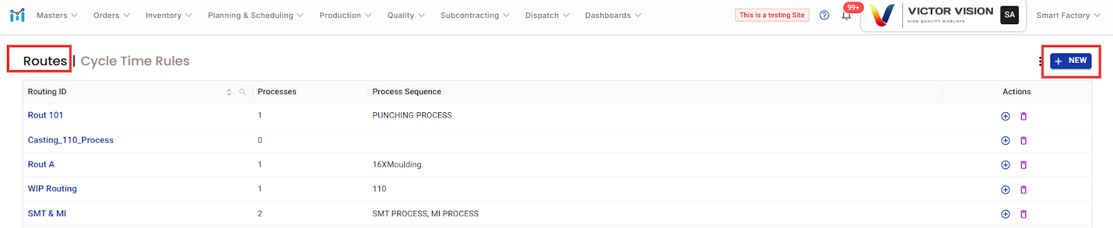 Go to the Routes list and confirm your new route appears with the correct process name and sequence.