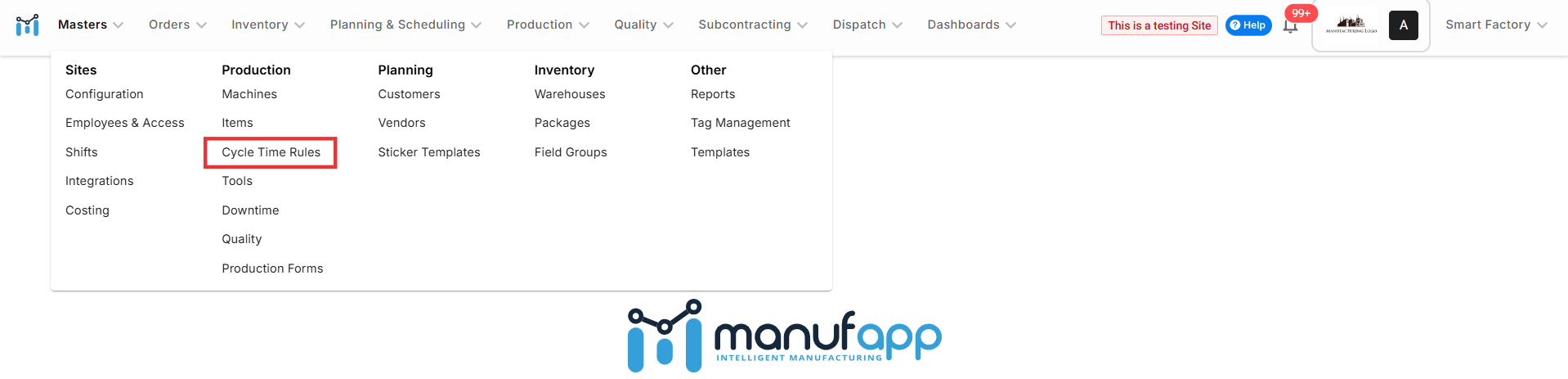 Objective To create and configure a new site (factory location or plant) in ManufApp with relevant business, operational, and formatting settings. 🛠️ Steps to Create a New Site in ManufApp Step 1: Go to the Sites Section Navigate to: Masters > ...