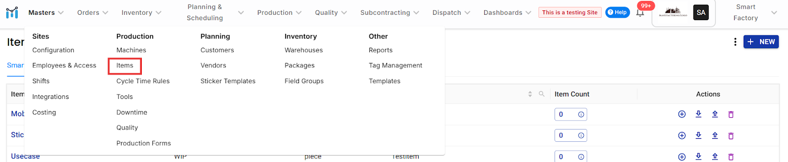 How to Create New Item on Manufapp