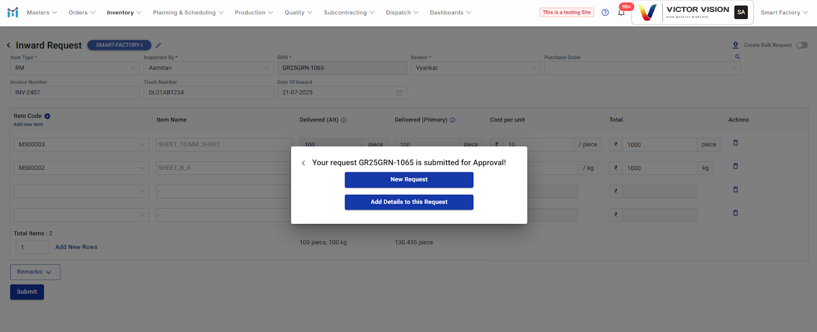 How to Create Manual Inward Request (Without PO) in ManufApp