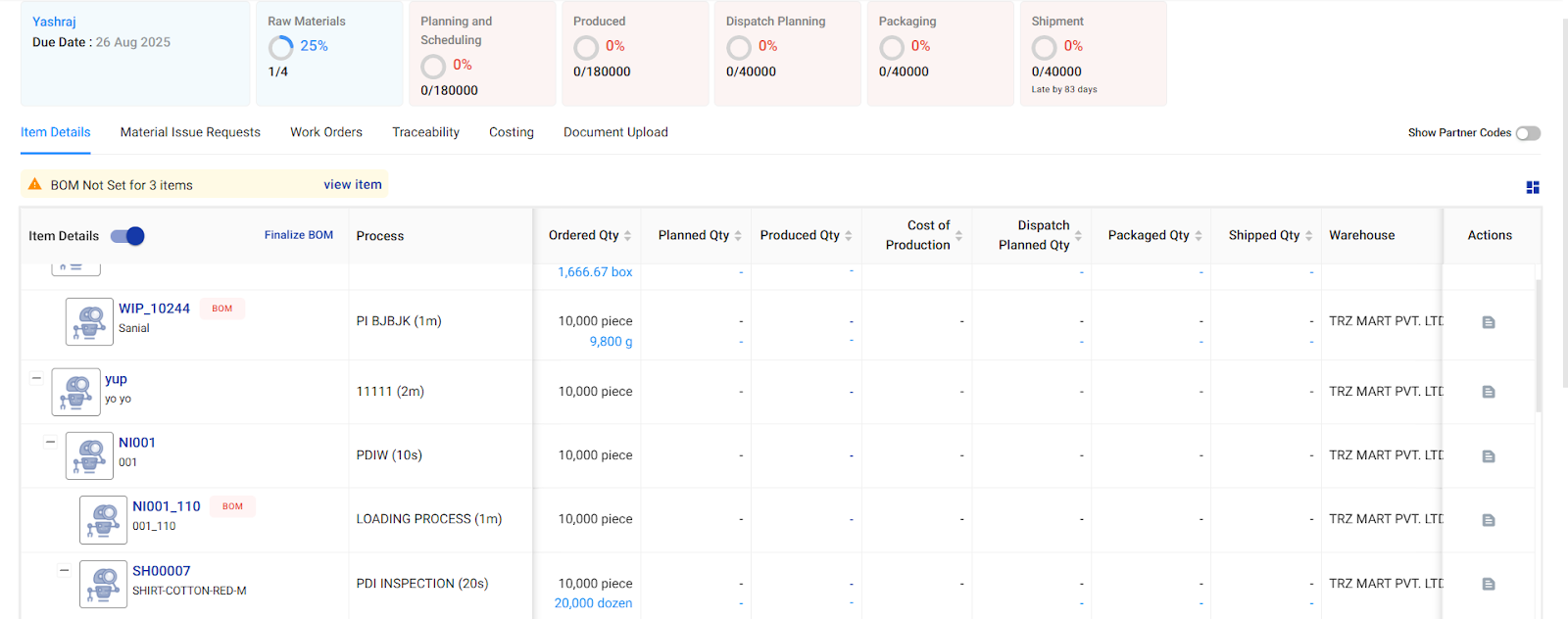 Objective To enable planners and production teams to assign and manage job priorities directly from the Production Board, ensuring that critical orders are identified and acted upon first. Steps Go to Planning & Scheduling in the top menu. Click ...