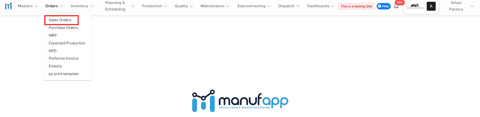 This guide explains how to create a Sales Order in ManufApp — from navigating to the Sales Order module to submitting and managing the order. For a quick overview, see: What is a Sales Order in ManufApp? Step 1: Navigate to Sales Orders Go to: Orders ...