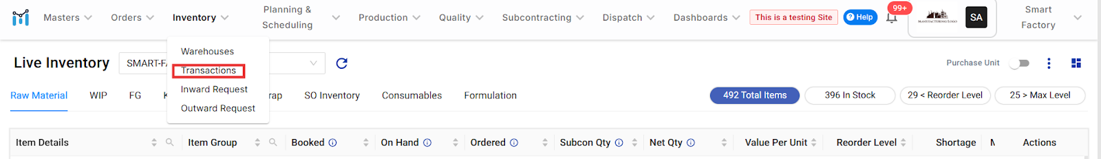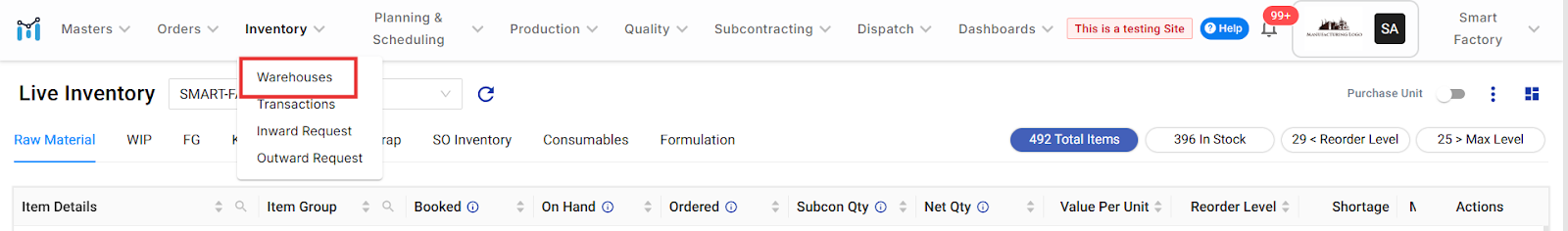 Objective To enable users to view real-time stock for any warehouse or all warehouses in ManufApp, across different categories like Raw Material, WIP, FG, Kits, Rejected, Scrap, SO Inventory, and Consumables. This helps teams quickly identify ...