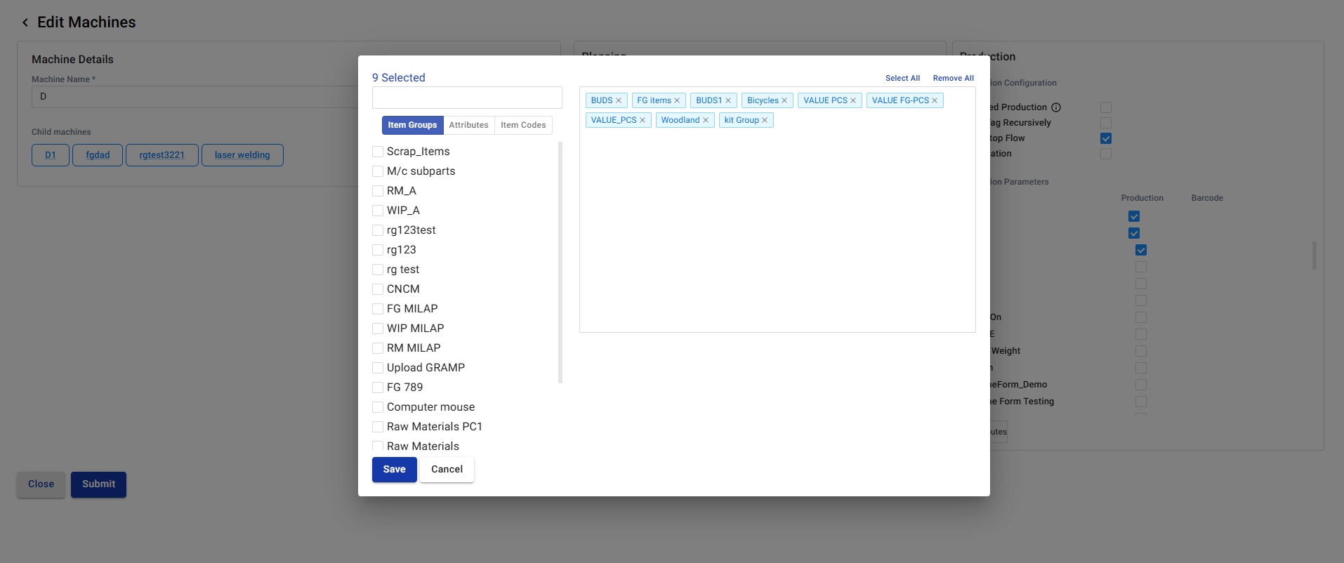 Note : All threeβAttributes, Items, and Item Groupsβcan be tagged to a machine to enable advanced filtering and automated planning.