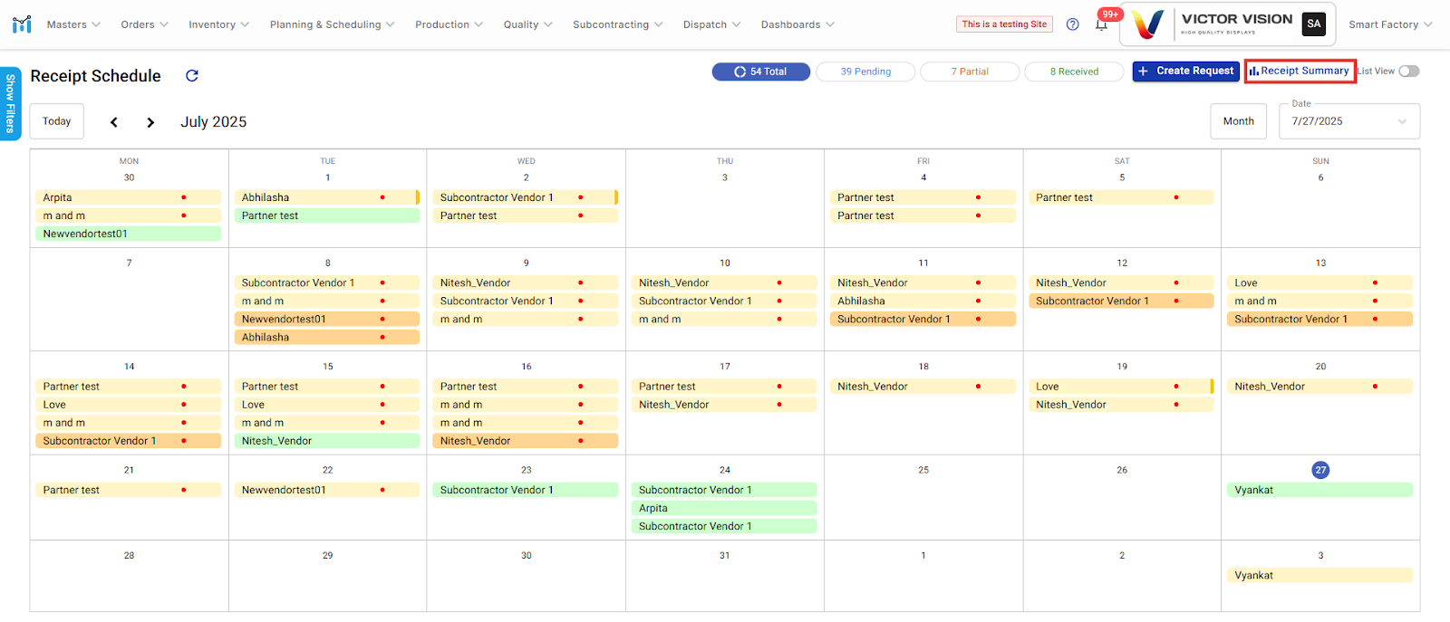 To provide a real-time, summarized view of all scheduled, received, pending, partial, and delayed receipts—helping users monitor material inflow and supplier performance effectively in both calendar and quantity formats.