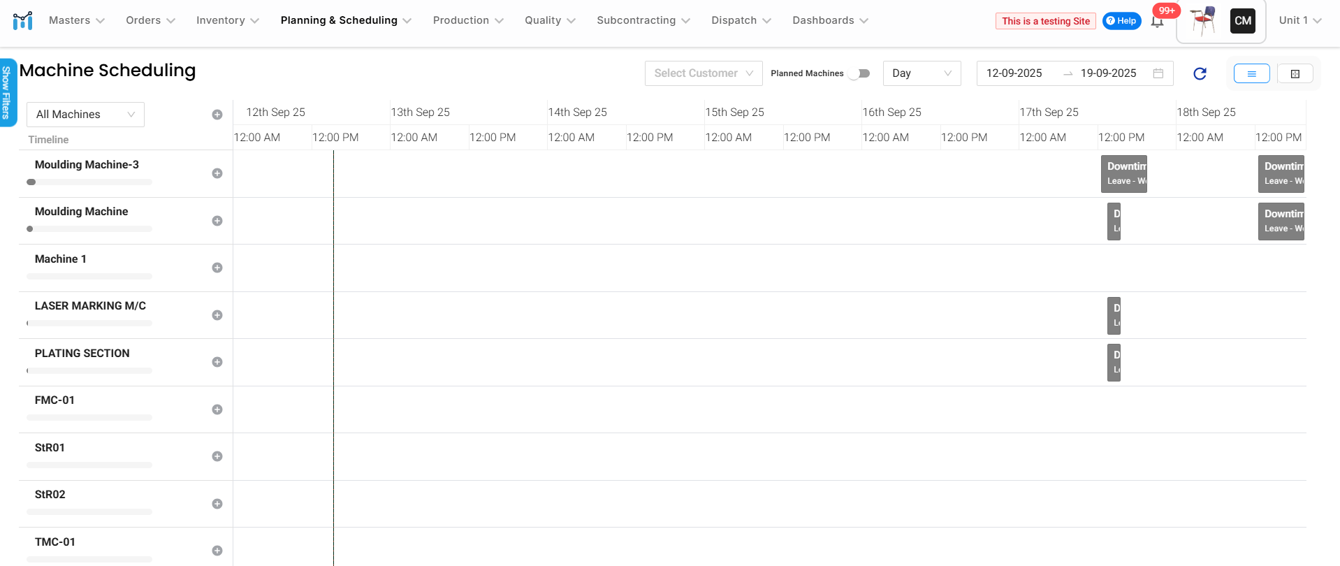 Navigate to Planning & Scheduling → Machine Scheduling from the top menu.