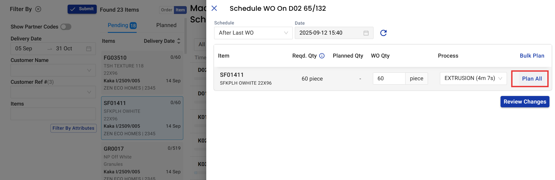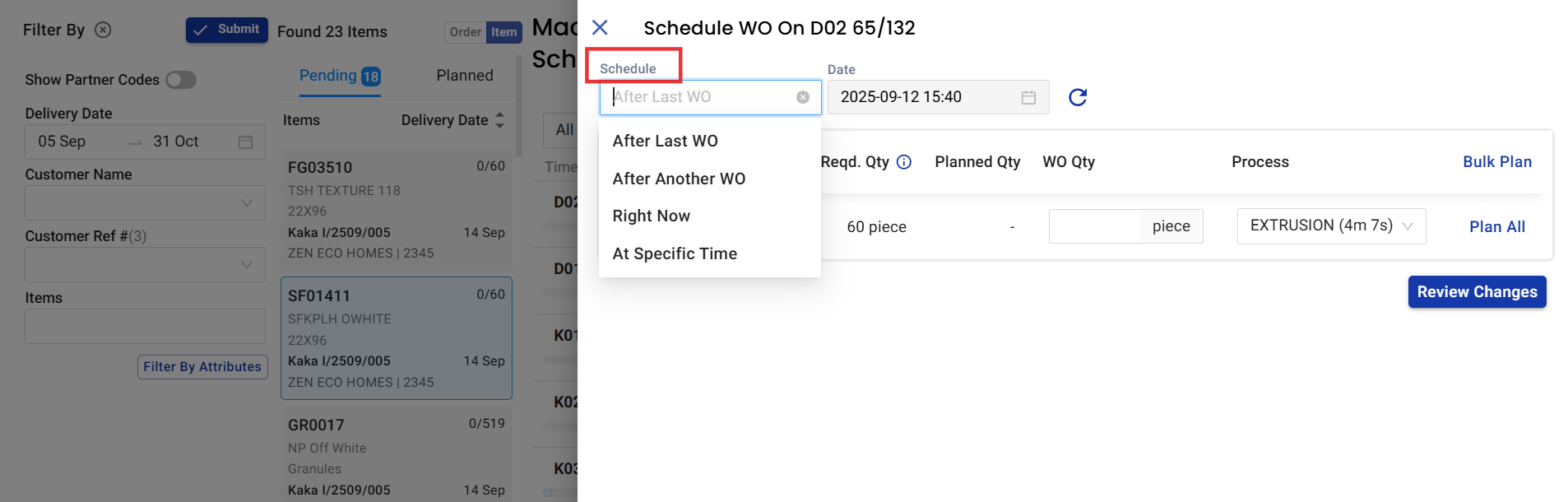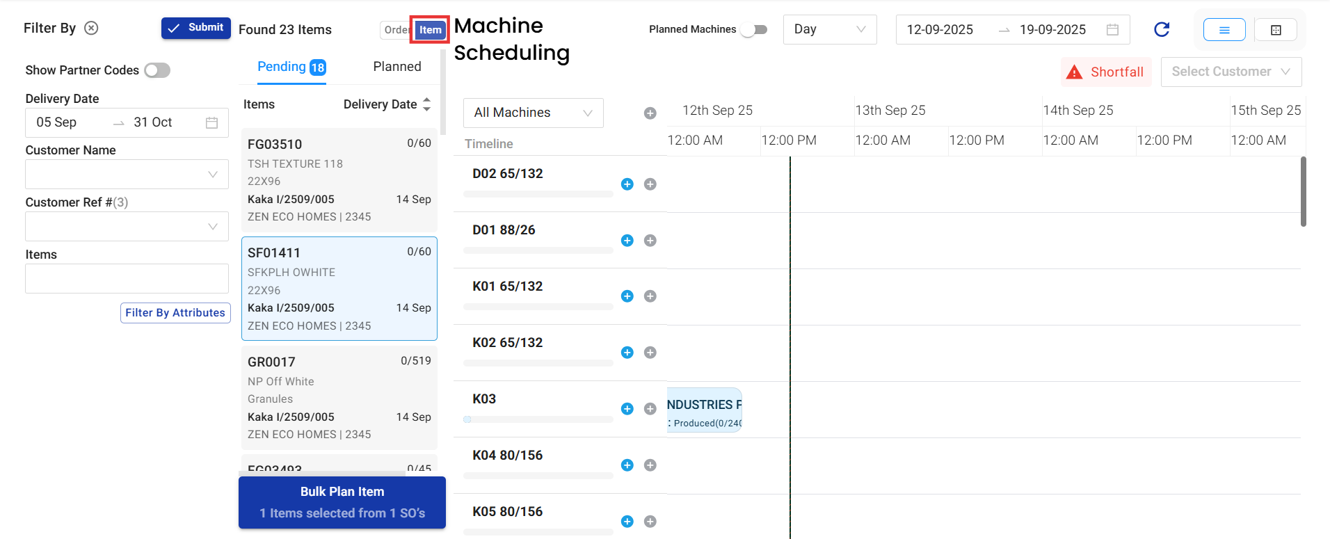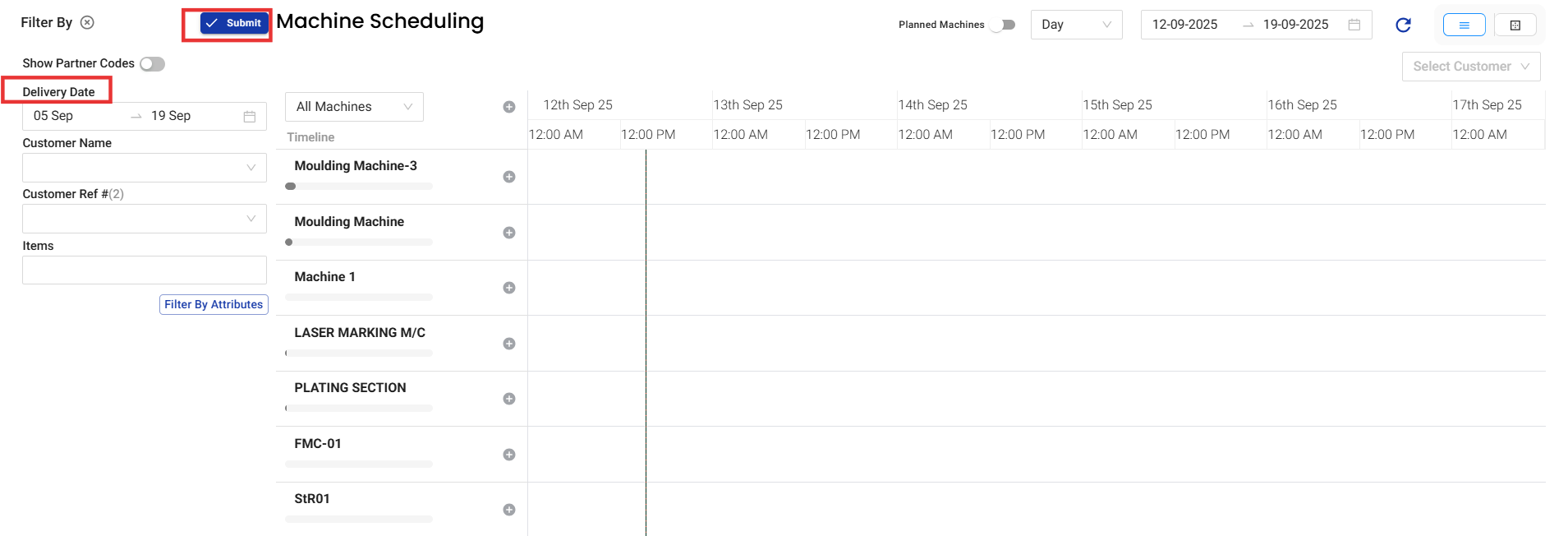 Optionally, filter by customer or machine to narrow down the Sales Orders and focus on specific requirements.