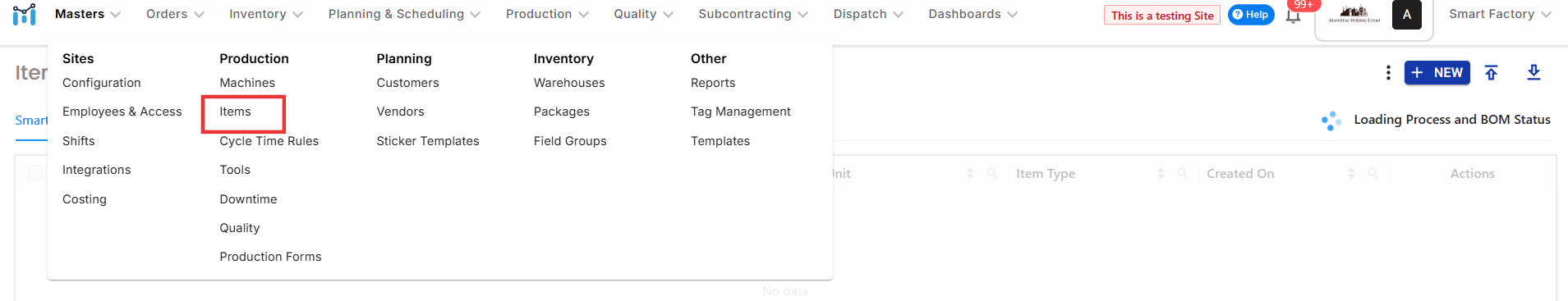 Creating a Bill of Materials (BOM) in ManufApp helps you define all the components needed to make a finished product. This quick guide shows how to set up a BOM step-by-step, including WIP items and raw materials. Step 1: Go to Items Master Navigate ...