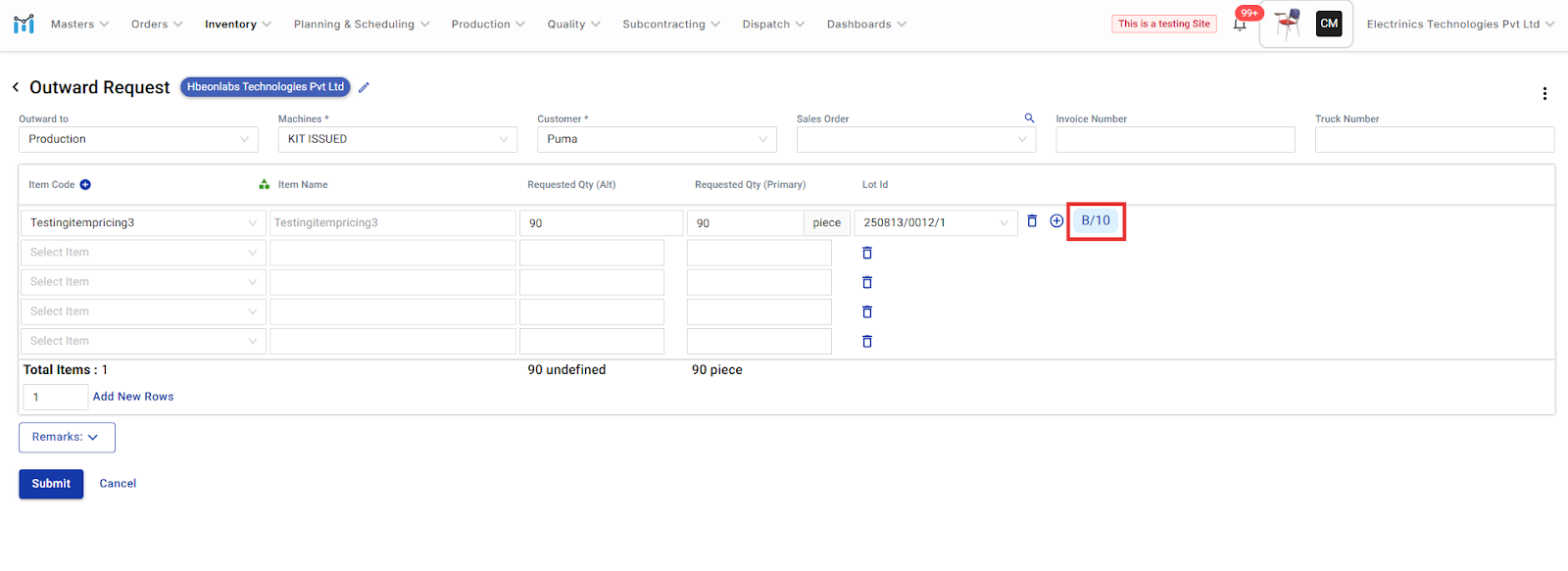 Step-by-Step Process Step 1: Create Outward Request Go to Inventory β Outward Request. Select where to issue: Production ...